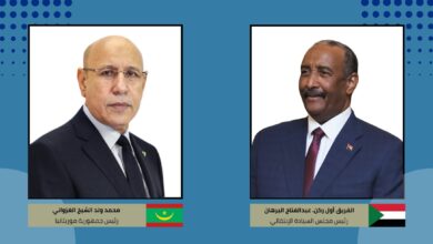 رئيس مجلس السيادة القائد العام للقوات المسلحة يهنئ رئيس موريتانيا بمناسبة إعادة انتخابه