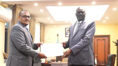 عصام كرار يسلم وزير خارجيةجنوب السودان نسخة من أوراق اعتماده
