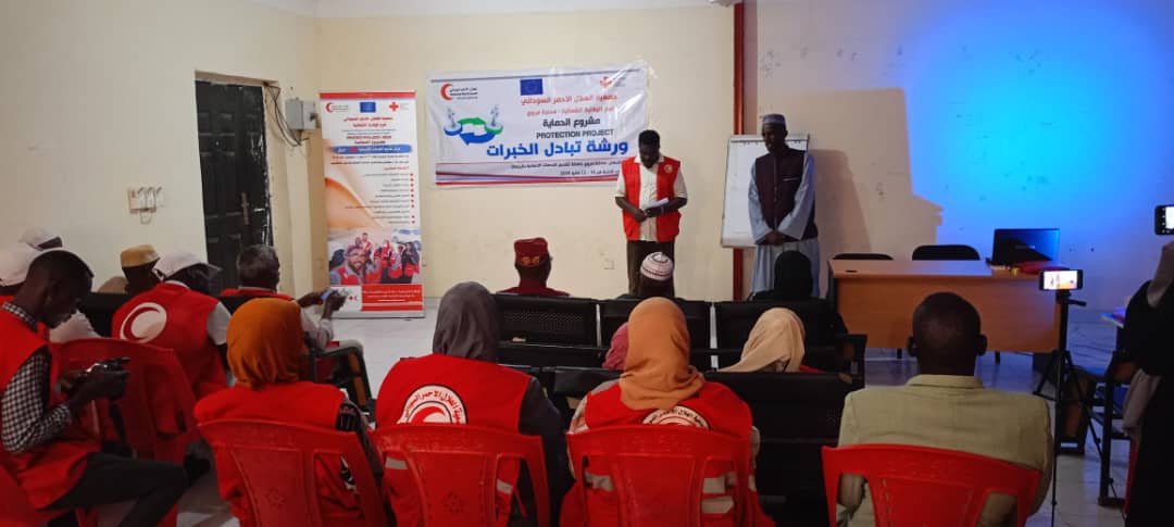 فندت مدير مشروع الحماية لبنى فتح الباب ورشة تبادل الخبرات بانها ضمن مشروع الحماية لبرنامج الهلال الاحمر السوداني بالولاية الشمالية