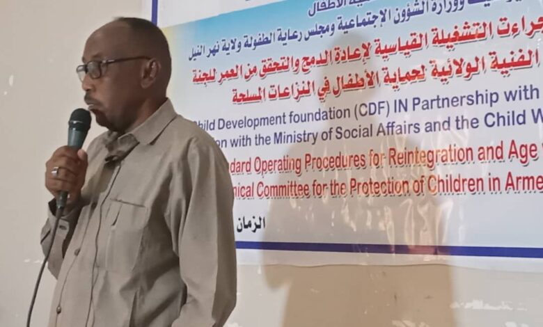 أوضح الاستاذ/خالدعبدالغفار ان المليشيات المتمرده حرمت مجموعه كبيره من اطفال السودان من حقوقهم الاساسيه في التعليم والرعاية الصحيه والاحساس وحرمتهم من الاحساس بالدفء الاسري وعملت علي تجنبدهم للقتال في هذه الحرب وحمل السلاح ضد أهلهم وتخريب بلدهم في مخالفه صريحه لكل القوانين الدوليه جاء ذلك في الورشه التي إقامتها منظمة تنميه الأطفال بالشراكة مع اليونسيف ووزارة التنميه الاجتماعيه ومجلس رعاية الطفوله بنهر النيل بقاعة إذاعة شندي تحت عنوان(الإجراءات التشغليه الفياسيه للعادة الدمج والتحقق من العمر للجنة الفنيه الولائيه لحماية الأطفال في النزاعات المسلحه)….وقد استعرض ا.خالدعبدالغفار المدير التنفيذي لمحلية شندي حاضرة ولاية نهر النيل الجهود التي بذلتها محلية شندي من أجل الاطفال الذين نزحوا إليها مع أسرهم بعد الحرب ووفرت لهم الدراسه مع تلاميذ المحليه وقدمت لهم الرعاية الصحيه وبرامج الدعم النفسي في كل مراكز الإيواء التي استضافت الوافدين..وقد حيا سيادته الجهود الكبيره التي قامت بها وزارة التنميه الاجتماعيه بالولاية وإدارة الرعاية الاجتماعيه بالمحليه وجهود كل الجهات المهتمه بحقوق الطفل منها المجلس القومي لرعاية الطفوله واليونسيف وغيرها من المنظمات والأفراد الخيرين.. ومن جانبه ذكر مسئول اليونسيف ديفيد الذي شارك في الورشه ان هناك اكثر من (15)مليون طفل تضرروا من هذه الحرب المدمره وهنالك (3) مليون طفل يحتاجون الي حماية ورعايه خاصة وان كثير من الأطفال فقدوا أسرهم وان اسرا فقدت وسائل كسب العيش وان الكثير من المؤسسات المعنيه بتقديم خدمات للأطفال دمرت بسبب الحرب ..واكد ديفيد مسئول اليونسيف ان منظمته تعمل مع كل الجهات المختصه بالأطفال الولائيه والأحاديث ورعاية الأطفال. وقالت ممثل المجلس القومي لرعاية الأطفال بثينه ان الأطفال يمثلون نصف سكان السودان وان الورشه التي تقام اليوم في شندي مع الشركاء المهتمين باامر الطفوله وان نتائجها وتوصياتها تأتي تعزيزات لحماية ورعاية الطفوله وقد رحبت ممثل الشئون الاجتماعيه بشندي خزاة محمود بالضيوف والمشاركين في الورشه وكان للعميد معتز عوض من القوات المسلحه قدم المحاضره الاولي التي شملت علي تعريفات للقوانين الدوليه المتعلقه بحقوق الإنسان والفرق بينها واستعراض الدائمه واامفيده لأسباب. منطقيه..وقد شاركت في الورشه الجهات المهتمه باامر الطفوله٠ وتستمر الورشه لمدة يومين نناقش محاضراتها كل الجوانب المتعلقه بحقوق الطفل خاصة في مناطق النزاع المسلح…