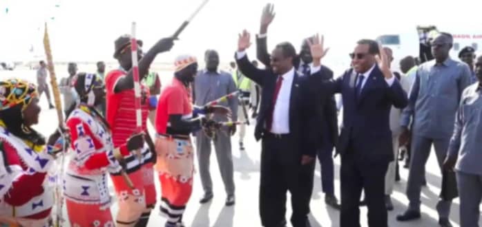واصطفت حشود جماهيرية كبيرة على جانبى الطريق لاستقباله في الطريق المؤدي من مطار بورتسودان الى مدينة بورتسودان، رافعة علم السودان واللافتات الترحيبية.