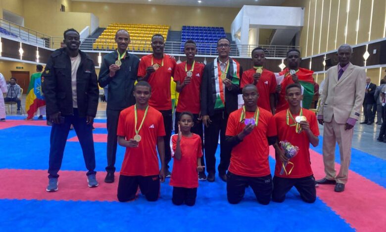 والجدير بالذكر أن البطولة التي اختتمت أمس بمشاركة “14” دولة حصد فيها السودان ثمانية ميداليات في فئات ( 14- 15) وفئة الكبار فوق (18) سنة حيث أحرز البطل عمر خالد ذهبيتين في وزن 60كلج وتحت 63 في منافسات الكوميتية بينما أضاف المنتخب السوداني ثلاث ميداليات فضية لفريق الكاتا الجماعي ( فئة الكبار فوق 18 سنة ) وتوج البطل عماد الدين حمد بفضية الكاتا الفردي لفئة 14-15 سنة فيما حصل البطل اسعد السر على فضية الكوميتيه وزن تحت 75 كلج لفئات الكبار فيما حصل كل من الابطال علاء الدين حمد على برونزية الكاتا الفردي لفئة الكبار وعبد الله اسحاق بوزن فوق 84 كيلو على برونزية ثالثة أكدت علو كعب ممثلي السودان ليعد هذا الإنجاز الاول من نوعه منذ تأسيس الاتحاد